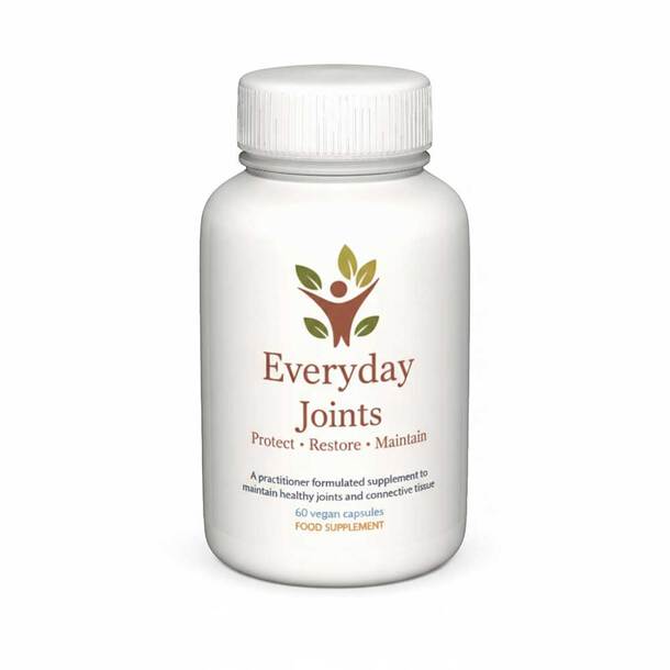 Everyday Joints is a practitioner-formulated daily supplement designed to help protect, restore and maintain healthy joints and connective tissue, using a powerful blend of 10 natural ingredients including turmeric, boswellia, bromelain, ginger, and bioperine to support flexibility, comfort, and mobility.