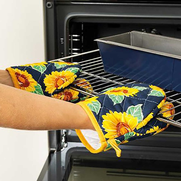 When the days turn cold, bring warmth and cheer to your kitchen with this bright 5-piece sunflower apron set.